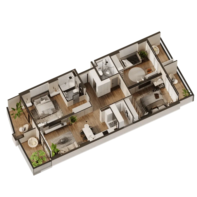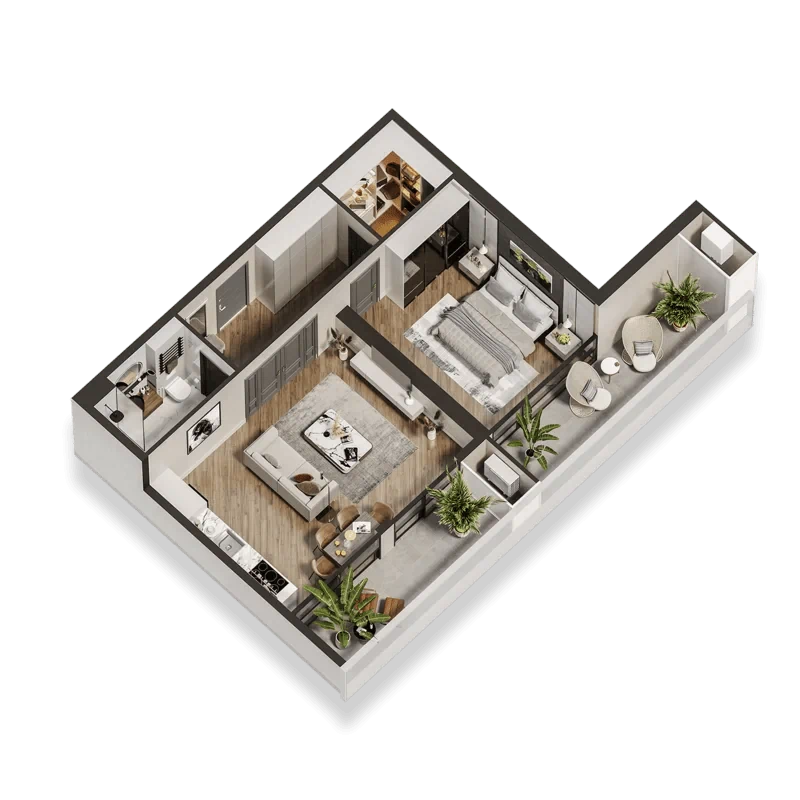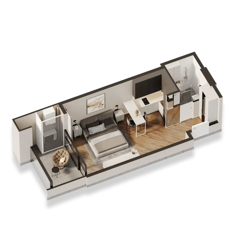 דירות אקסקלוסיביות, בפרויקט תמצאו 5 סוגי דירות: דירת סטודיו, דירה עם חדר שינה אחד, דירה עם שני חדרי שינה, דירה עם שלושה חדרי שינה.